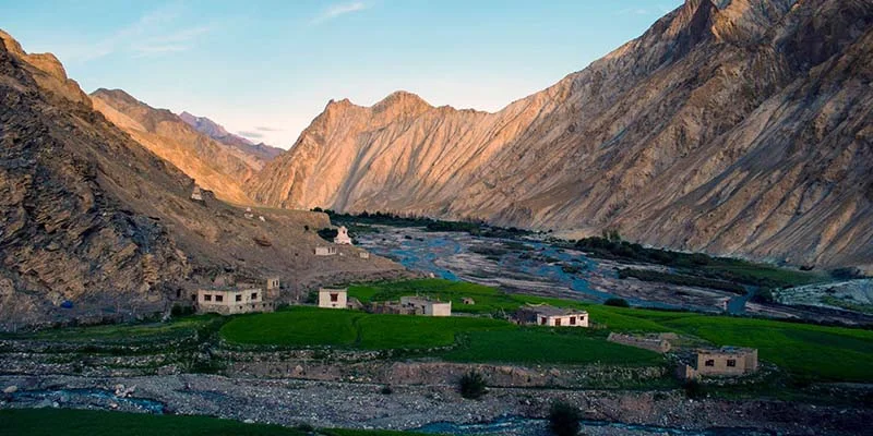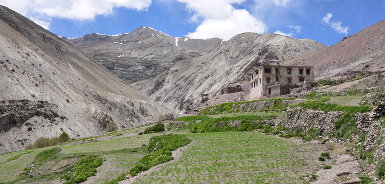Begin a gradual ascent from Zinchen to Rumbak, where spectacular views of the snow-capped Stok Mountains await. Continue trekking along the Rumbak Nala toward Yurutse village, known for its lush fields of barley and potatoes.