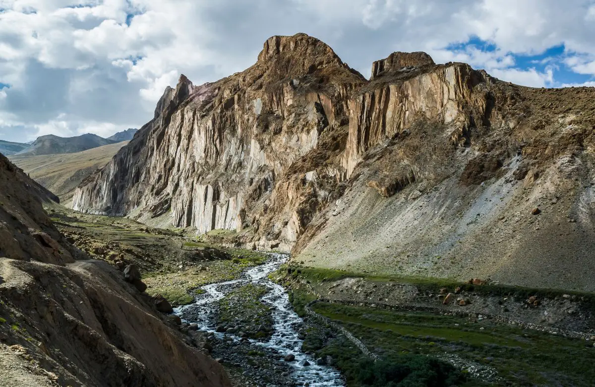The trek begins on a well-defined path featuring gentle inclines and rolling grassy ridges. Along the way, you’ll pass numerous mani walls carved with Buddhist prayers and ancient chortens. This stretch leads through one of Ladakh’s most stunning high valleys, framed by the majestic Kangyaze Peak.